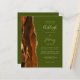 Save the cost of printing and mailing separate RSVP cards with this elegant modern all-in-one budget wedding invitation. The left-hand edge features a burnt orange and rust watercolor agate border trimmed with gold faux glitter. The customisable text combines handwriting, copperplate and italic fonts on an olive green background. The reverse side provides space for wedding details on a solid olive green background, along with a QR code guests can scan to visit your website and RSVP.