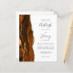 Save the cost of printing and mailing separate RSVP cards with this elegant modern all-in-one budget wedding invitation. The left-hand edge features a burnt orange and rust watercolor agate border trimmed with gold faux glitter. The customisable text combines charcoal grey handwriting, copperplate and italic fonts on a white background. The reverse side provides space for wedding details, along with a QR code guests can scan to visit your website and RSVP.