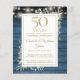 Featuring delicate watercolor country garden greenery and pretty string lights on a blue wood panels background, this chic rustic invitation can be personalised with your special 50 years anniversary celebration information. Designed by Thisisnotme©