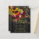 Rustic country wedding celebration and reception stylish affordable all in one RSVP and details QR code to website wedding invitation template on dark brown barn wood background featuring big yellow gold sunflowers and red burgundy roses bouquets, strings of twinkle lights, and a faux gold elegant typography script. +++++++++++++++ Easy to personalise with your details and your QR code (automatically generated with your link). ++++++++++++ The invitation is suitable for autumn fall outdoor garden backyard barn vintage rustic country weddings. ++++++++++ PLEASE READ THIS BEFORE PURCHASING! This is a budget affordable wedding card printed on a paper sheet (each sheet has one card). ++++ For the best rapport price-quality, our advice is to choose the Semi-Gloss paper type (it is thick enough to be used for stationery) ++++ If you need envelopes, choose the ENVELOPE OPTION. +++ Double-check all the information and spelling of your text because you will receive exactly what you see - no one else will check anything before printing. ++++ This card is designed for size 4.5" x 5.6". In the case you choose another size of the card and text goes outside page, everything needs to be fixed before adding the product to cart. Please ask Live Design Service for help.