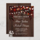 Rustic country strings of twinkle lights budget affordable wedding rehearsal dinner invitation with a mason jar with white baby breath flowers and rust autumn leaves on a maroon brown barn wood background. +++++++++ Ideal for your autumn fall elegant outdoor backyard parties or barbecues. ++++++++++ PLEASE READ THIS BEFORE PURCHASING! This is a budget affordable wedding card printed on a paper sheet (each sheet has one card). ++++ For the best rapport price-quality, our advice is to choose the Semi-Gloss paper type (it is thick enough to be used for stationery) ++++ If you need envelopes, choose the ENVELOPE OPTION. +++ Double-check all the information and spelling of your text because you will receive exactly what you see - no one else will check anything before printing. ++++ This card is designed for size 4.5" x 5.6". In the case you choose another size of the card and text goes outside page, everything needs to be fixed before adding the product to cart. Please ask Live Design Service for help.