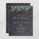 Invite your friends and family to your bridal brunch with these rustic chalkboard slate with eucalyptus, elegant but casual bridal shower invitation postcards. These budget wedding invitation cards have an envelope option. Personalise with name, bridal shower date, location and any other info. Add website and any other information on the back. These unique greenery bridal shower invitations will make a lasting impression. COPYRIGHT © 2020 Judy Burrows, Black Dog Art - All Rights Reserved. Budget Rustic Greenery Bridal Brunch Invitation