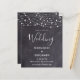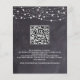 Invite friends and family to your wedding with these elegant yet rustic chalkboard and string lights wedding invitation cards. These unique slate all in one wedding invitations feature elegant white string lights on grey chalkboard slate design with wedding website qr code for easy RSVP's. Personalise these chalkboard wedding invitations with names, wedding date, and location. See our wedding collection for unique wedding invitations, wedding photo albums, guest books, party gifts, and more! COPYRIGHT © 2020 Judy Burrows, Black Dog Art - All Rights Reserved. Budget Rustic Slate String Lights QR Code Wedding