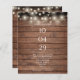 A rustic budget wedding invitation design featuring pretty string lights and your special date and wedding details set in classic, chic typography on a rustic wood background. Designed by Thisisnotme©