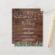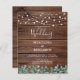 Invite friends and family to your wedding with these elegant yet rustic wood with string lights and eucalyptus greenery wedding invitation cards. These unique rustic county wedding invitations feature elegant white string lights on barn wood with with botanical greenery design. Personalise these rustic wedding invitations with names, wedding date, and location.  See our wedding collection for unique wedding invitations, wedding photo albums, guest books, party gifts, and more! COPYRIGHT © 2020 Judy Burrows, Black Dog Art - All Rights Reserved. Budget Rustic String Lights Greenery Wedding Invit