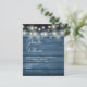 This rustic budget wedding invitation can be personalised with your wedding details set in elegant typography on a blue wood panels background, complemented with pretty string lights. The reverse features your own special photo. Designed by Thisisnotme©
