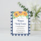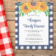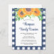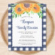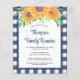 Invite your family to their gathering with this budget family reunion invitation decorated with watercolor sunflowers and greenery on a blue gingham background.