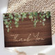 Send out Thank You notes to your friends and family from your wedding with these rustic wood with eucalyptus greenery, modern thank you cards. Customise these wedding thank you cards with your personal message. These unique greenery wedding thank you cards will make a lasting impression, your guests, family and friends! COPYRIGHT © 2020 Judy Burrows, Black Dog Art - All Rights Reserved. Budget Rustic Wedding Greenery Thank You Note Card
