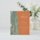 The left-hand edge of this elegant modern wedding invitation features a sage green watercolor agate border trimmed with faux gold glitter. The customisable text combines gold-coloured handwriting, copperplate and italic fonts on a burnt orange background. The reverse side features a matching sage green and gold agate design.