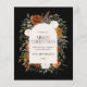 Budget Rustic watercolor floral Christmas card design. With beautiful rust, terracotta, black and sage green pampas grass eucalyptus botanical watercolor details. This modern holiday design is sure to set the style for your holiday season