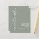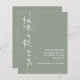 Minimalist Calligraphy QR Code Sage Green Wedding Save the Date. A budget priced smaller 4.5 x 5.6” alternative on 110gsm semi gloss similar in thickness to a postcard. Optional QR code to your wedding website on the back which will be automatically generated when you change the sample url to your own website url or delete sample code if not required. Stylish set calligraphy is rotated to the left hand side, with all the details stylishly to the right with lots of white space for a contemporary feel. Easily personalise with your details. And change the colour of text and background if you wish via the edit further option.