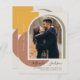 Budget Save the Date Wedding Announcement. Simple geometric shapes in muted autumn tones arranged to highlight your photo in a modern arch frame. Trendy script calligraphy accentuates the names in contrast to otherwise crisp minimalist typography. Easily adjust the size and placement of your photo in Advanced Customise Further mode. Coordinated background on reverse side with space for additional information. Other styles and colours available in store.
