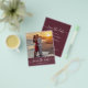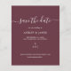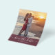Chic script boho photo save the date flyer with your names, wedding date, location and wedding website in white elegant handwritten script calligraphy and modern typography on a burgundy background. Simply add your personal details and favourite photo! Exclusively designed for you by Happy Dolphin Studio. If you need any help or matching products, please contact us through our store chat. We're happy to help you make your wedding the most beautiful day!