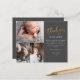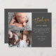 This Budget Script 3 Photo Collage Baby Thank You Card features modern gold handwritten calligraphy thank you and personal message on the front. Click the personalise button to customise this design with your photos and details.