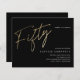 Modern minimalist 50th birthday party invitation features stylish faux gold foil number handwritten script Fifty and your party details in classic serif font on black background color, simple and elegant, great surprise adult milestone birthday invitation for men and women. the black background color can be changed to any color of your choice.