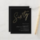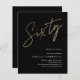 Modern minimalist 60th birthday party invitation features stylish faux gold foil number handwritten script Sixty and your party details in classic serif font on black background colour, simple and elegant, great surprise adult milestone birthday invitation for men and women. the black background colour can be changed to any colour of your choice.