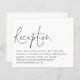 Script Black White Wedding Reception enclosure. A budget friendly SMALLER 4.5” x 5.6” alternative. Available in a SEMI GLOSS 110 lb CARD STOCK or a SATIN FINISH 80 lb THINNER PAPER STOCK. Envelopes are an optional extra. Reception is in a set handwritten style with the details beneath. Lots of white space at the top for a contemporary touch! Easily personalise the rest of the text to your own details.