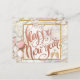 A budget price SMALLER 4.5” x 5.6” alternative in a SEMI-GLOSS 110 lb CARD STOCK, similar to the thickness of a postcard. Envelopes are slightly larger than the card size. Happy New Year Script Champagne Balloons. Send sparkly greetings with Happy New Year taking centre stage in an elegant rose gold script typography within a gold faux glittery border and gold confetti and swirl patterned border on an ivory backdrop. Champagne, balloons, mask and background clock tower complete the design, and there is a coordinating pattern on the back, which you can easily personalise with your greeting, names and the year.