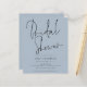 Script Dusty Blue Bridal Shower Invitation. A budget price SMALLER 4.5” x 5.6” alternative. Available in a SEMI-GLOSS 110 lb CARD STOCK which is the default option (thicker for invitations), OR a SATIN FINISH 80 lb THINNER PAPER STOCK (ideal for enclosures). Envelopes are an optional extra and are slightly larger than the card size. . This modern design in dusty blue for your Bridal Shower Invitees has set elegant script for Bridal Shower at the top and easily personalise with your details beneath. You can also change text and background colours on either side if you wish via the Customise Further option.