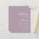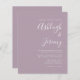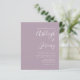 This simple modern wedding invitation features white text on a dusty lavender background. Add the names of the bride and groom in stylish handwriting calligraphy and the details in sans serif font. The reverse side is a matching shade of solid dusty lavender.