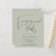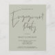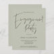 A value for money BUDGET alternative on a smaller size 4.5 x 5.6” semi-gloss 110lbs weight, which is of similar thickness to a postcard (however is not suitable to use as a postcard.). PLEASE NOTE there is ONE invite per sheet. Handwritten Script Engagement Party Sage Green Invitation Contemporary minimalist design with the main header Engagement Party in a set dark brown stylish script and the rest of the text you can easily personalise. You can also change the colour and font of the editable text if you so wish via the Click to Customise Further option.