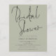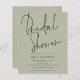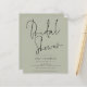 Script Light Sage Green Bridal Shower Invitation. A budget price SMALLER 4.5” x 5.6” alternative. Available in a SEMI-GLOSS 110 lb CARD STOCK which is similar in thickness to a postcard. PLease Note There is ONE per sheet. This modern design in light sage green for your Bridal Shower Invitees has set modern handwriting style script for Bridal Shower at the top and easily personalise with your details beneath. You can also change text and background colours on either side if you wish via the Customise Further option.