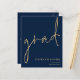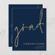 PLEASE NOTE : There are two paper options to choose from for this size (4.5 x 5.6”) in the Budget range. For this product, I would recommend the semi-gloss which is a 110 gsm card stock, similar in thickness to a postcard. The Satin option is a much thinner paper 80gsm. The default is set to semi-gloss. PLEASE NOTE there is ONE per sheet. Budget Script Navy Gold Graduate Announcement This simple gold typography on classic navy blue design to announce the news of your graduate has informal set handwriting style script for the main header, grad, and easy to personalise typography to the bottom right hand side with your details and also your message on the back.
