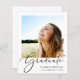 Modern budget-friendly graduation announcement featuring "Graduate" in an elegant script and her photo and her name, school and class year in simple modern typography.
