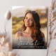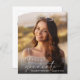 Elegant budget-friendly graduation party invitation featuring the grad's photo overlayed with "graduate" in a modern white script and their name and class year in simple white typography. On the reverse side, add the grad party details.