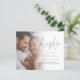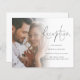 Budget Script Photo QR Code Reception Details Enclosure. A budget price SMALLER 4.5” x 5.6” alternative. Available in a SEMI-GLOSS 110 lb CARD STOCK which is the default option (thicker for invitations), OR a SATIN FINISH 80 lb THINNER PAPER STOCK. Simply replace the sample photo with your own favourite. A gradient overlay layer is on top of your photo so it fades out as it reaches the centre with the text partially overlaid on top. Evenine Party is in a modern set script and easily personalise the rest of the text. Replace the QR code on the back with a QR code to your wedding website. You can create QR codes for free online. Simply search “QR code creator” and lots of options come up to create for free. You can also delete the QR code and text on the back if not required via customise further.