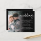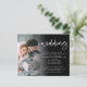 PLEASE NOTE There are two paper options to choose from for this size (4.5 x 5.6”) in the Budget range. For this product, I would highly recommend the semi-gloss which is a 110 gsm card stock, similar in thickness to a postcard. The Satin option is a much thinner paper 80gsm. The default is set to semi-gloss. There is ONE per sheet. Budget Modern Script Photo QR Code Wedding Invitation. Add your QR code to your wedding website on the back making this a convenient option for your guests to RSVP and see all the details without the need for separate RSVP and details cards. Your QR code will be automatically generated to update the sample code in the design, when you simply change the sample URL in the template with your own wedding website URL. A minimalist fun design to let everyone know your happy news. Simply replace the sample photo with your own favourite. A black gradient overlay layer is on top of your photo so it fades out as it reaches the centre with the text partially overlaid on top. Wedding is in a modern set script and easily personalise the rest of the text.
