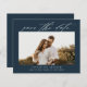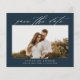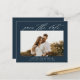 An elegant script photo save the date with horizontal photo and minimal text. Click edit to customise this design.