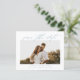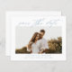 An elegant script photo save the date with horizontal photo and minimal text. Click edit to customise this design.
