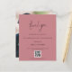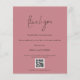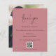 Script QR Code Wedding Photo Gallery Dusty Rose Pink Thanks. A budget price SMALLER 4.5” x 5.6” alternative. Available in a SEMI-GLOSS 110 lb CARD STOCK which is the default option (thicker for invitations), OR a SATIN FINISH 80 lb THINNER PAPER STOCK (ideal for enclosures). Envelopes are an optional extra and are slightly larger than the card size. A minimalist typography design with a set stylish handwriting style script for Thank You. On the back replace the sample picture with your own favourite from your day as a keepsake for your guests. Easily personalise the rest of the text with your message and names and replace the QR code sample with your own leading to your online wedding photo gallery.