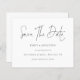 Script QR Code Wedding Save The Date. A budget price SMALLER 4.5” x 5.6” alternative. Available in a SEMI-GLOSS 110 lb CARD STOCK which is the default option (thicker for invitations), OR a SATIN FINISH 80 lb THINNER PAPER STOCK (ideal for enclosures). Simple elegance with Save The Date in a modern set script.The rest of the text you can easily personalise. With your QR code to your wedding website on the back. Shown here in black on white however the text and background colours can be changed if you wish via the customise further option.