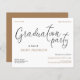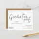 A value for money BUDGET alternative on a smaller size 4.5 x 5.6” semi-gloss 110lbs weight, which is of similar thickness to a postcard (however is not suitable to use as a postcard.). PLEASE NOTE there is ONE invite per sheet. Budget Script Text Graduation Party Invitation. A simple typographical design, with the main header, Graduation Party, in a set trendy black font. The rest of the text in black and gold is easily personalised and you can also change the editable text colours and style if you wish via the click to customise further option as well as the gold background on the back.