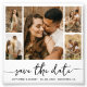 Budget Elegant Modern Black and White Minimalist Typography Script 5 Photo Collage Wedding Save The Date Flyers. This romantic delicate design perfect for modern wedding. Features 5 (five) grid photo collage, a whimsical calligraphy in hand lettered style swash tail font. Easy to personalise it with your wedding details and pictures. Low budget cheap affordable Flyers.