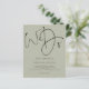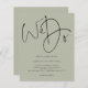 Script We Do Pale Soft Sage Green Wedding Invitation. A budget price SMALLER 4.5” x 5.6” alternative. Available in a SEMI-GLOSS 110 lb CARD STOCK which is the default option (thicker for invitations), OR a SATIN FINISH 80 lb THINNER PAPER STOCK (ideal for enclosures). Envelopes are an optional extra and are slightly larger than the card size. A simple yet elegant typographical design in light sage green. Envelopes are an optional extra. Stylish set script We Do takes centre stage at the top.The rest of the text you can easily personalise. Text and background colours can be changed if you wish to better suit your wedding theme via the customise further option.
