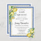 A She Found Her Main Squeeze Lemon Bridal Shower Theme is the perfect summer bridal Brunch and Bubbly. Refreshing and cool citrus fruit always create beautiful displays and refreshments. The Jenny's Lemons Collection takes chic watercolor lemons and pair them with Mediterranean blue tiles. In this design the tiles create a blue frame. A thin gold frame elevates it. Two lemon bouquets add a floral touch. She found her Main Squeeze is written at the top. The remainder of the bridal shower details follow.