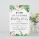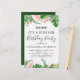 Budget Green Tropical Palms and Blush Pink Floral Flowers Watercolor Shhh ... Surprise Birthday Party Invitations with Green Background which includes beautiful and elegant script typography with modern botanical blush pink flowers and tropical Hawaiian greenery.