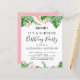 Budget Green Tropical Palms and Blush Pink Floral Flowers Watercolor Shhh ... Surprise Birthday Party Invitations with Blush Pink Background which includes beautiful and elegant script typography with modern botanical blush pink flowers and tropical Hawaiian greenery.