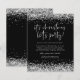 Silver Glitter It’s Christmas Let’s Party Black Invite. A budget price SMALLER 4.5” x 5.6” alternative. Available in a SEMI-GLOSS 110 lb CARD STOCK which is the default option (thicker for invitations), OR a SATIN FINISH 80 lb THINNER PAPER STOCK (ideal for enclosures). Envelopes are an optional extra and are slightly larger than the card size. Glitzy style for your Holiday gathering with silver faux glitter bordering the top and bottom edges on both sides and a set handwriting style script for the main heading typography on a classy black background with white typography. Easily personalise the rest of the text to your own details.