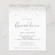 Silver Glitter Wedding Rehearsal Dinner. A budget price SMALLER 4.5” x 5.6” alternative. Available in a SEMI-GLOSS 110 lb CARD STOCK which is the default option (thicker for invitations), OR a SATIN FINISH 80 lb THINNER PAPER STOCK (ideal for enclosures). Envelopes are an optional extra and are slightly larger than the card size. This modern design has elegant informal set script for Rehearsal Dinner and silver faux glitter borders at the top on both sides. The rest of the typography you can easily personalise.