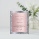 A modern, elegant wedding invitation. Faux silver and blush pink metallic looking background decorated with faux silver glitter dust. Personalise and add your names and wedding details. Black coloured letters.