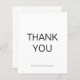 A value for money smaller 4.5 x 5.6 inch alternative defaulted to the semi gloss option which is recommended for invitations and is a similar thickness to a postcard. The Satin option is a MUCH THINNER PAPER stock. Budget Simple Black White Custom Thank You Card. A fully customisable design. Easily change the words. The font colour and type can be changed via the edit menu. You can also change text and background colours on either side if you wish.