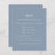 Budget Modern and Simple Dusty Blue RSVP Card. The font colour and type can be changed via the edit menu. You can also change text and background colours on either side if you wish. A value for money smaller 4.5 x 5.6 inch alternative defaulted to the semi gloss option which is recommended for invitations and is a similar thickness to a postcard. The satin option is much thinner.