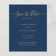 Budget elegant script modern minimalist non photo navy and gold wedding save the date announcement personalised affordable low budget flyer. Simple clean design template feature a cursive elegant hand lettering typography script „Save the Date” text in gold on navy blue background colour. ***PLEASE NOTE! *** BUDGET PAPER/FLYER IS PAPER THIN. ENVELOPES INCLUDED.*** UPGRADE THE PAPER FOR A THICKER PAPER. *** Traditional Cardstock with Envelopes: https://www.zazzle.com/elegant_script_minimalist_navy_and_gold_wedding_save_the_date-256865838550188303