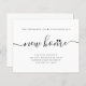 Simple elegant minimalist black and white new home handwriting calligraphy script moving announcement. ++++++++++++ Easy to personalise with your text and new home address! ++++++++++ PLEASE READ THIS BEFORE PURCHASING! This is a budget affordable wedding card printed on a paper sheet (each sheet has one card). ++++ For the best rapport price-quality, our advice is to choose the Semi-Gloss paper type (it is thick enough to be used for stationery) ++++ If you need envelopes, choose the ENVELOPE OPTION. +++ Double-check all the information and spelling of your text because you will receive exactly what you see - no one else will check anything before printing. ++++ This card is designed for size 4.5" x 5.6". In the case you choose another size of the card and text goes outside page, everything needs to be fixed before adding the product to cart. Please ask Live Design Service for help.