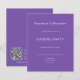 Budget Purple Modern and Simple QR Code Wedding Evening Party Invitation. The font colour and type can be changed via the edit menu. You can also change text and background colours on either side if you wish. A value for money smaller 4.5 x 5.6 inch alternative defaulted to the semi gloss option which is recommended for invitations and is a similar thickness to a postcard. The satin option is much thinner. Add your QR code to your wedding website on the back as a convenient option for your guests to RSVP. QR codes can be created free online. Simply search “QR code creator” and select one of the free creators. You can also remove the QR code should you wish.