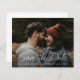 This Modern script Photo Wedding Save the Date features an elegant, minimal design with hand lettered save the date white typography on a full bleed photo. Customisable details and photo on the front. The back offers a personal message. Click the Edit button to personalise this design.